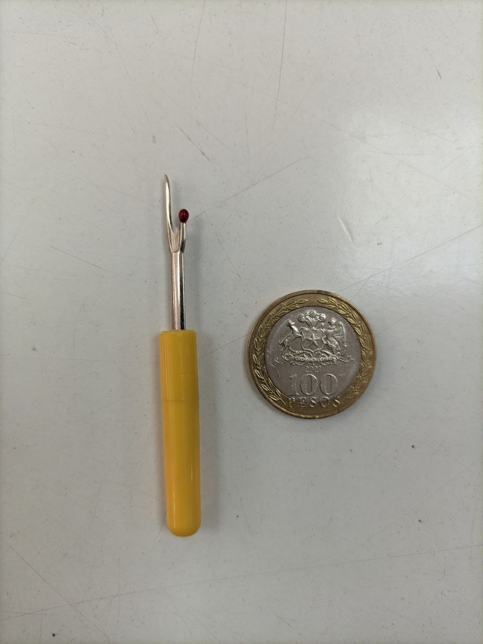Descosedor: Herramienta pequeña y afilada utilizada para deshacer costuras y remover hilos de manera rápida y precisa. Su punta fina y afilada permite desgarrar los puntos de costura sin dañar la tela, facilitando la tarea de reajustar o modificar prendas y proyectos de costura. Esencial para cualquier kit de costura o sastrería.
